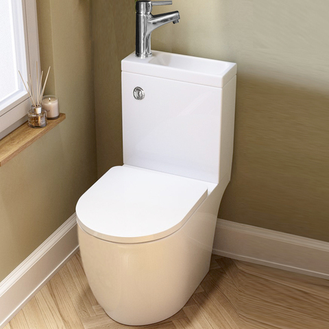 Enlace de WC acoplado con fregadero en la parte superior Muebles sanitarios únicos Lave Mains Inodoro Fregadero Combo para baños pequeños recipiente sobre WC