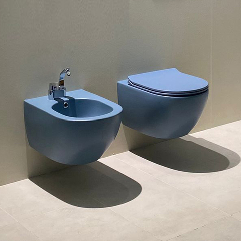 Consola WC lavado bidé Suite Cerámica cisterna Armario montado en la pared estera azul inodoro colgado Baño comercial inodoro artículos sanitarios